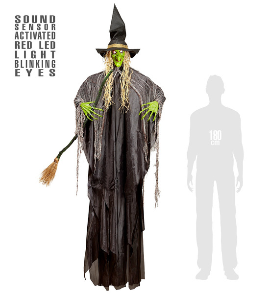 Dekoracja wiedźma do powieszenia, zielona, czarna.