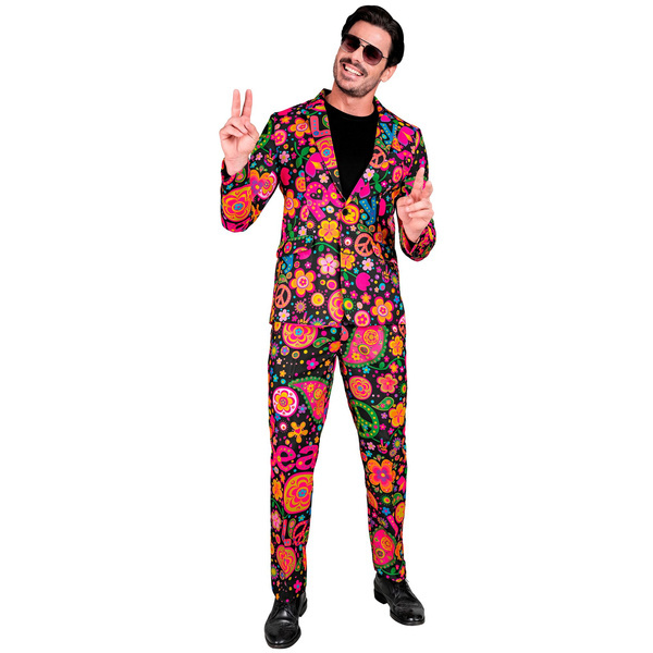 Zestaw zawiera: marynarkę, spodnie. Garnitur w stylu hippie. Kolor: wielokolorowy. Skład: 100% poliester.