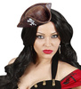 Usztywniany, brązowy kapelusik piracki, mocowany na elastycznej gumce.