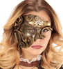 Wysokiej jakości maska z tworzywa sztucznego w stylu steampunk- na pół twarzy. W kolorze złotym przozdobiona licznymi