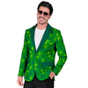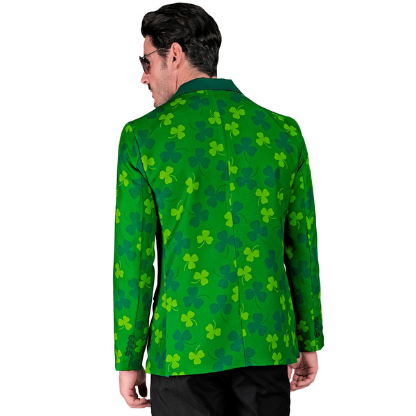 Marynarka męska w kolorze zielonym, zdobiona koniczynami.