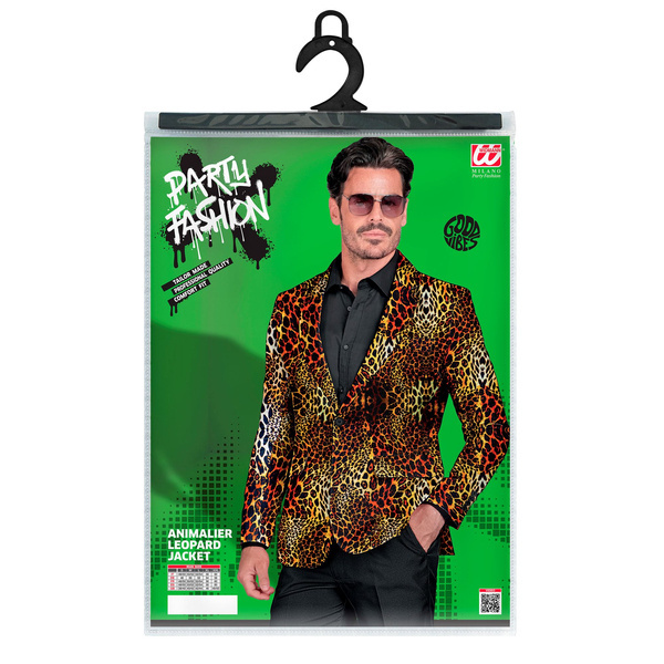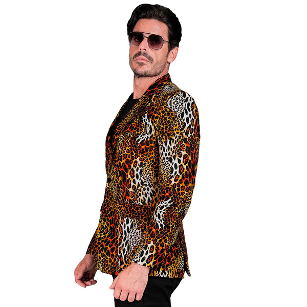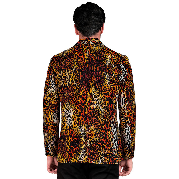 Marynarka imprezowa męska, zapinana na guziki. Wzór: panterka. Skład: 100% poliester.