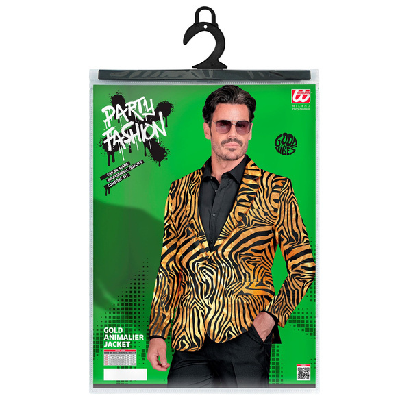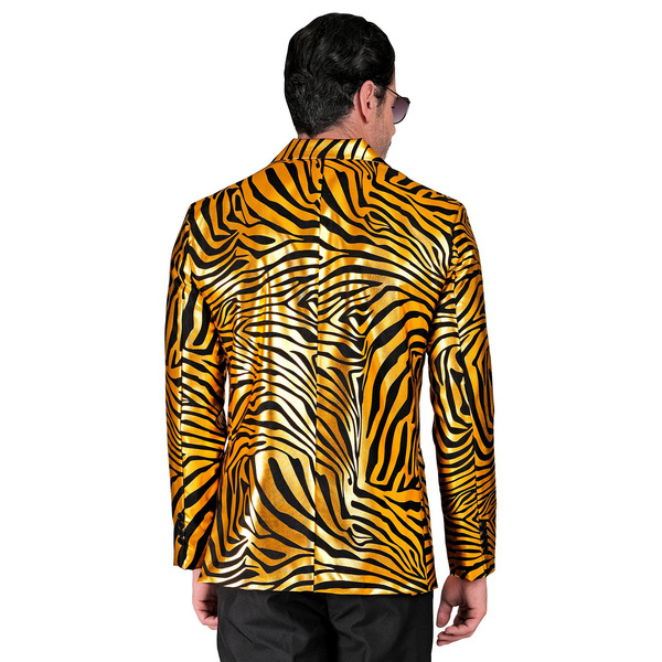 Marynarka imprezowa męska, zapinana na guziki. Wzór: zebra, kolor: czarno-złoty. Skład: 100% poliester.