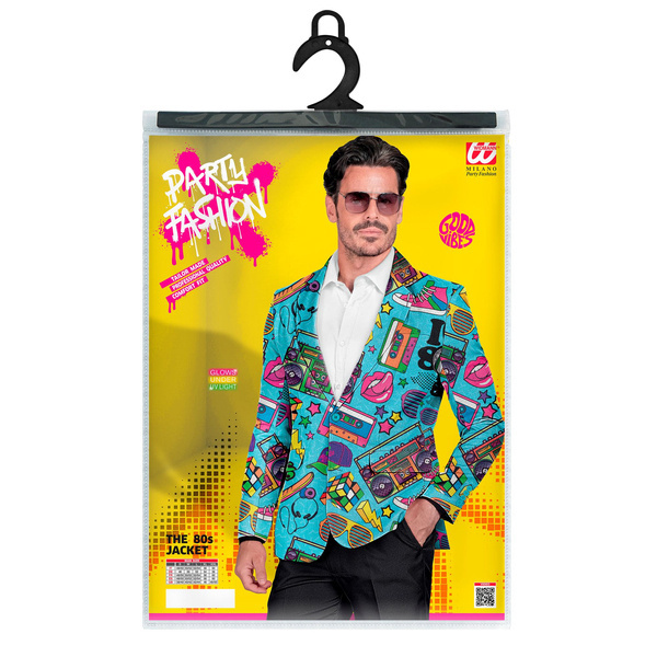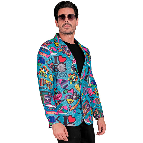 Marynarka męska wielokolorowa, wzory charakterystyczne dla lat 80.