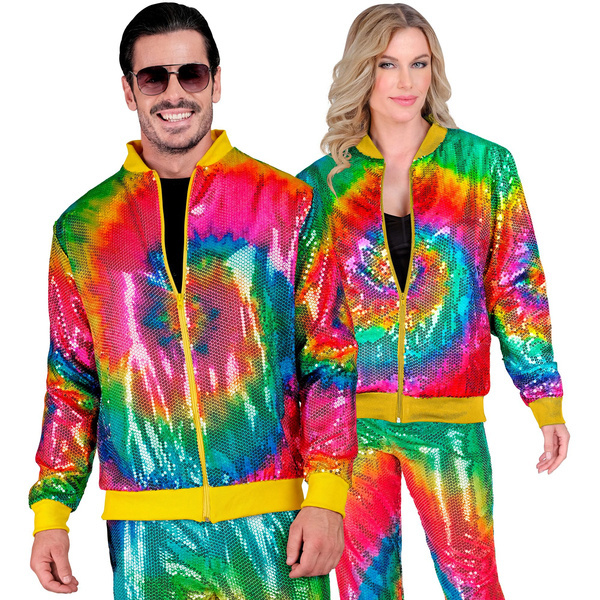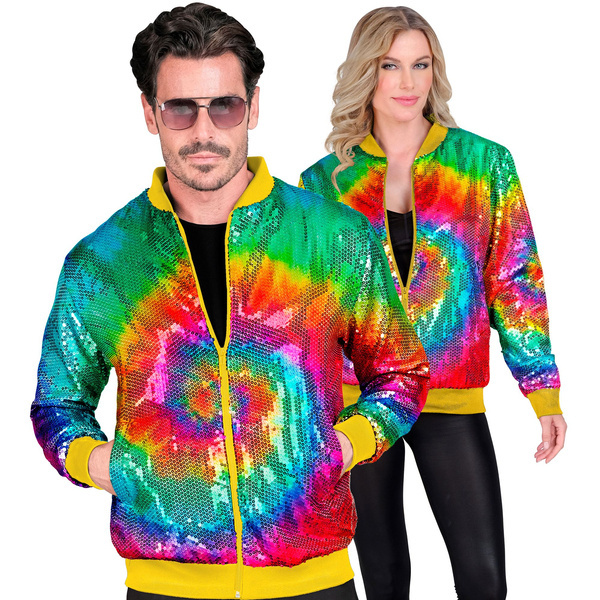 Kurtka bomberka w kolorowe cekiny. Wzór wirujący krąg. Produkt unisex.