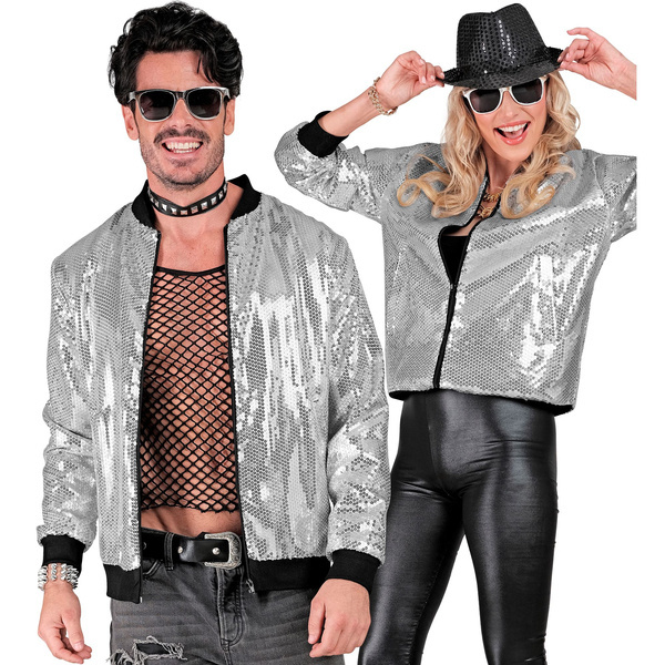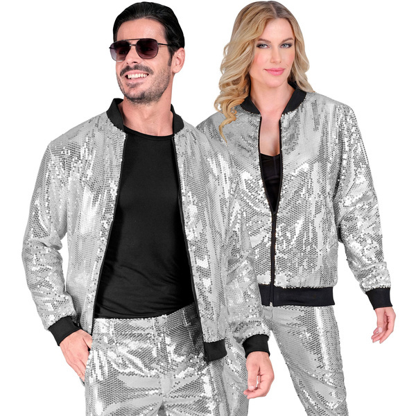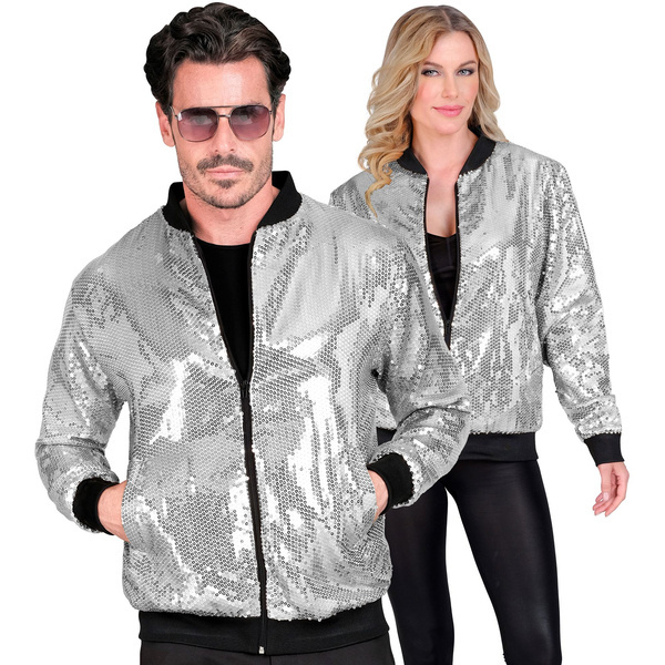 Kurtka bomberka w srebrne cekiny. Produkt unisex.