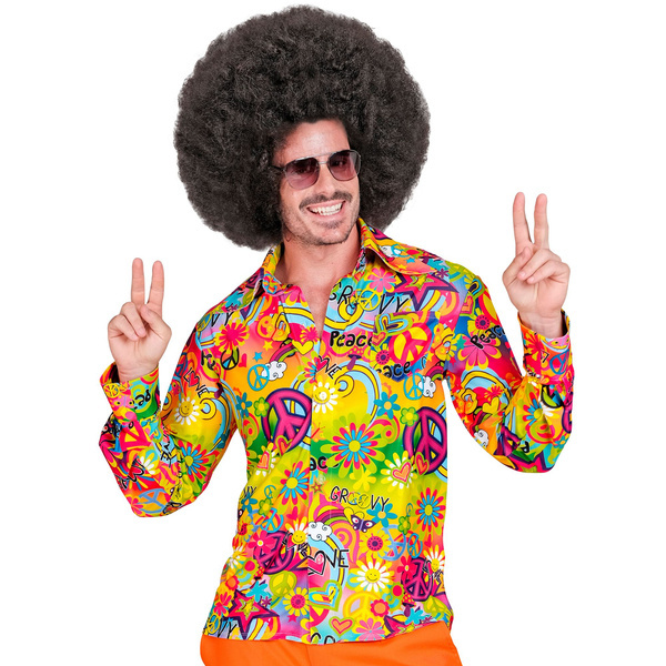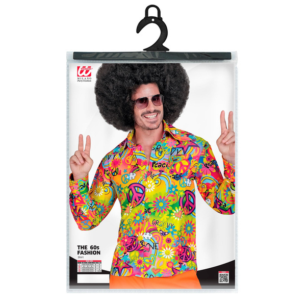 Koszula męska w stylu lat 60 70, motyw kolorowe pacyfki, kwiatki.