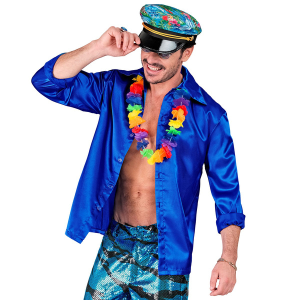 Koszula satynowa męska w kolorze niebieskim.