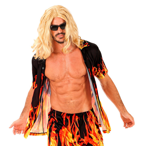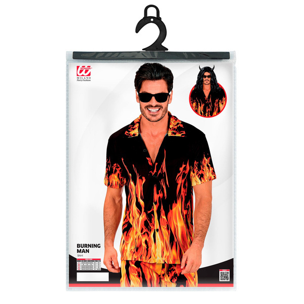 Męska koszula z krótkim rękawem w motyw płomieni, kolor czarno -czerwony.