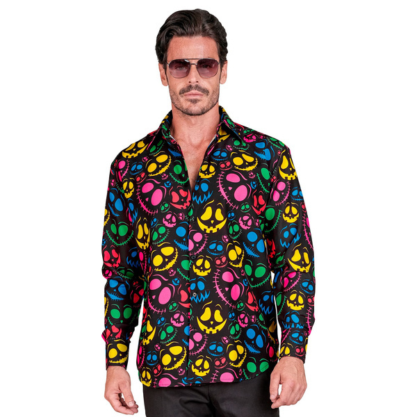 • Produkt w kolorze czarnym zdobiony nadrukiem neonowych duchów.