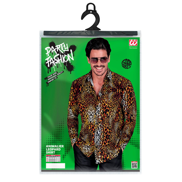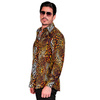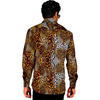 Męska koszula w odcieniach brązu i beżu w motyw panterki.