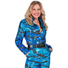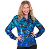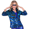 Damska koszula ozdobiona cekinami, wzór zwierzęcy tygrys, kolor niebieski.