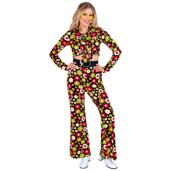 Spodnie męskie w stylu lat 60 70, wzór kolorowych kwiatów. Skład: 100 % poliester.