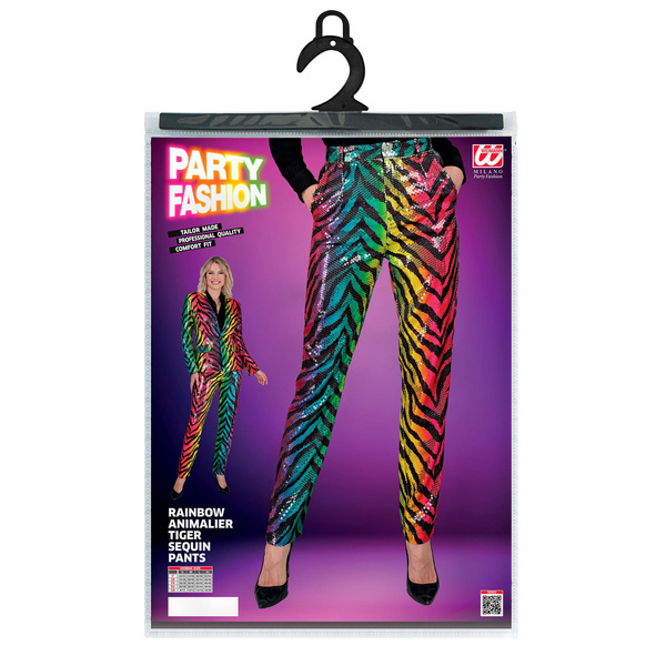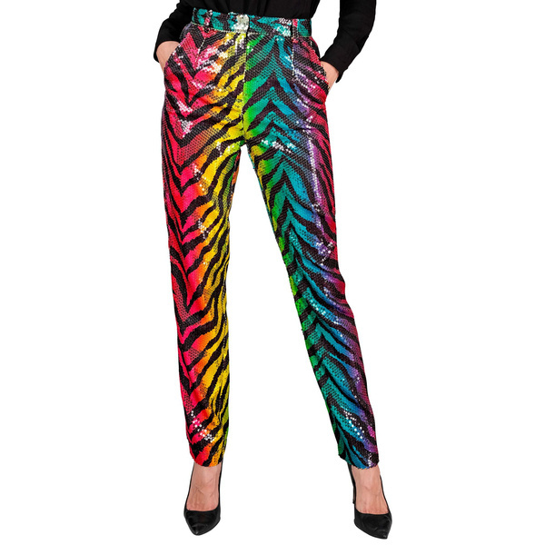 Spodnie damskie w cekiny, wzór kolorowy zwierzęcy tygrys. Skład: 100 % poliester.