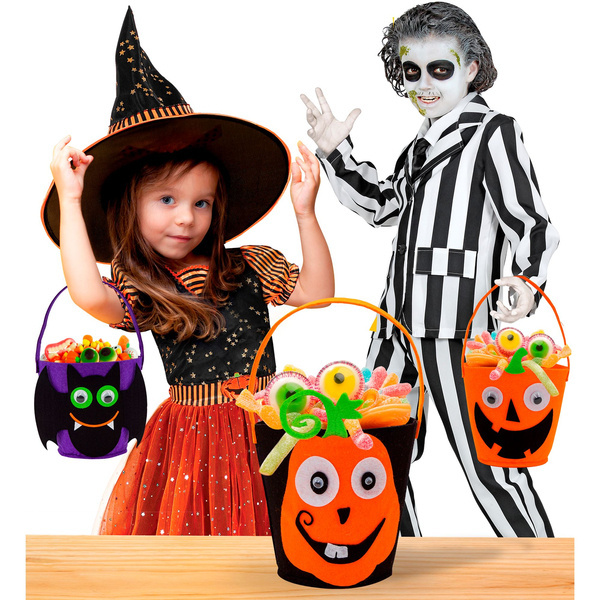 Koszyk filcowy z dynią na słodkości. Kolor: czarno-pomarańczowo-zielony. Posiada pomarańczowy uchwyt.