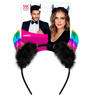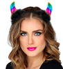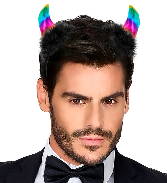 Opaska w kolorze czarnym z tęczowymi rogami.