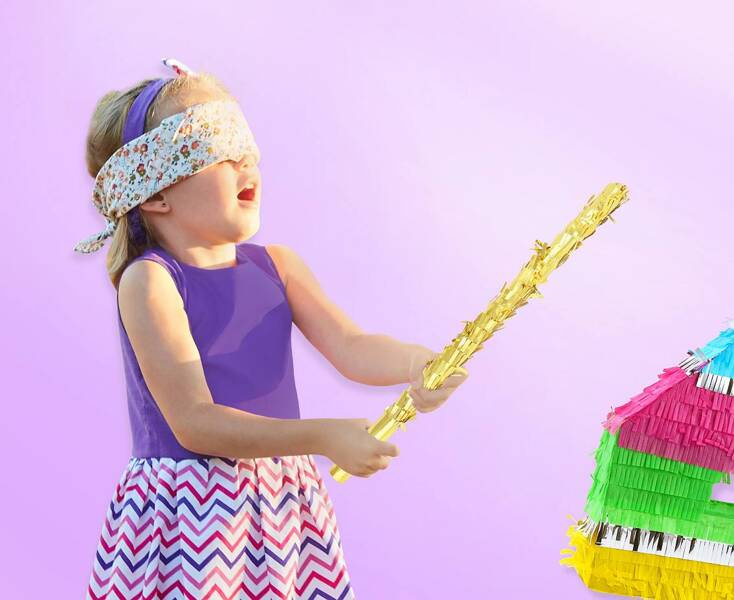 Kij do rozbijania piniaty wykonany z tworzywa sztucznego w kolorze złotym.