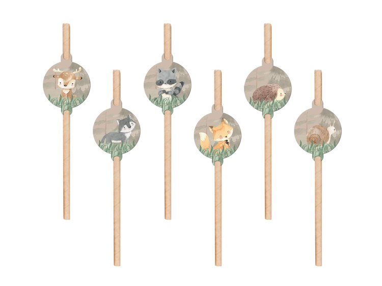 SŁOMKI PAPIEROWE LEŚNE ZWIERZĄTKA 6 SZT
