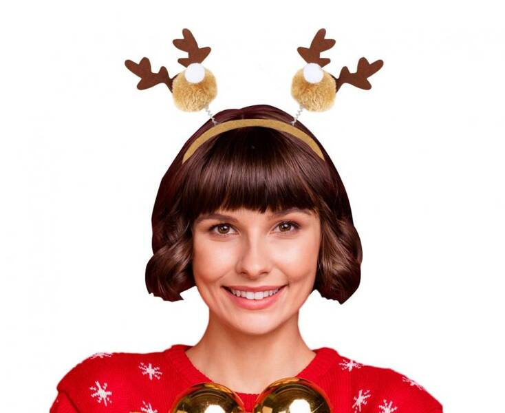 Opaska na głowę z reniferami mocowanymi na sprężynkach.