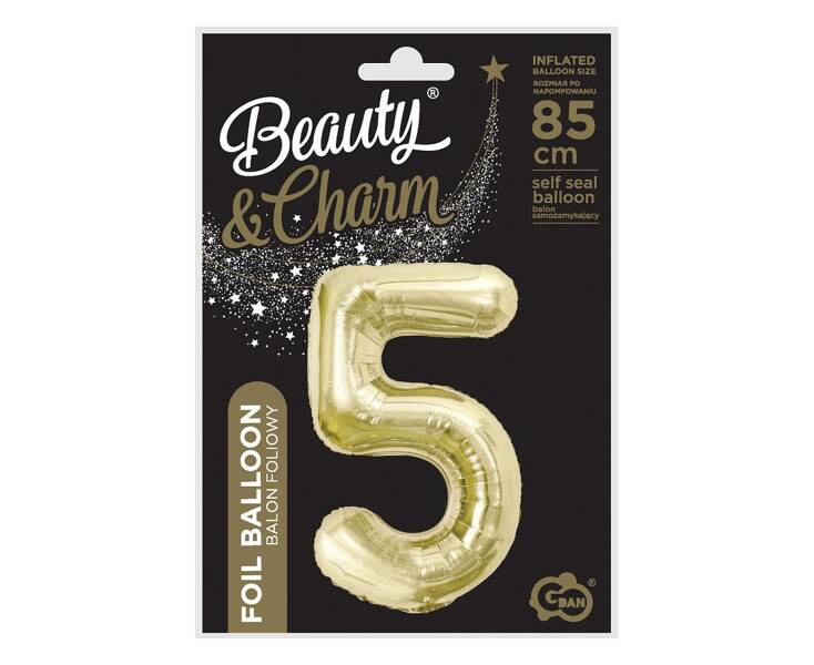 Balon foliowy w kształcie cyfry 5.