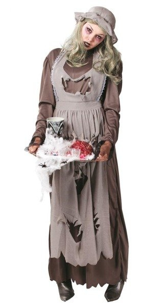 Fartuch wkładany przez głowę i wiązany z tyłu.
