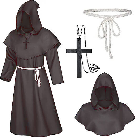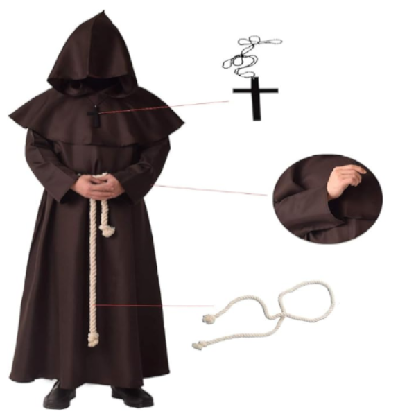• Zestaw zawiera: szatę, kaptur, pasek, naszyjnik z krzyżem.