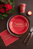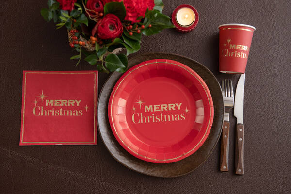 Kolor czerwony ze złotym napisem Merry Christmas.