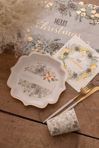 TALERZYKI PAPIEROWE MERRY CHRISTMAS ZŁOTO 21X21 CM