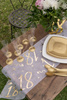 Złoty nadruk w postaci liczby 20, gwiazdek i serpentyn.