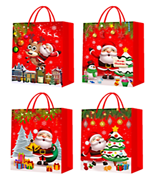 Torba prezentowa z bajkowym Mikołajem zdobiona brokatem i elementem 3D.