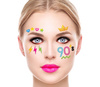 Zestaw naklejek cyrkonii do przyklejenia na twarz.
