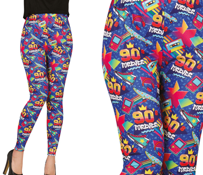 Legginsy z kolorowym nadrukiem między innymi napisem "90's forever".