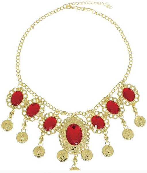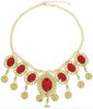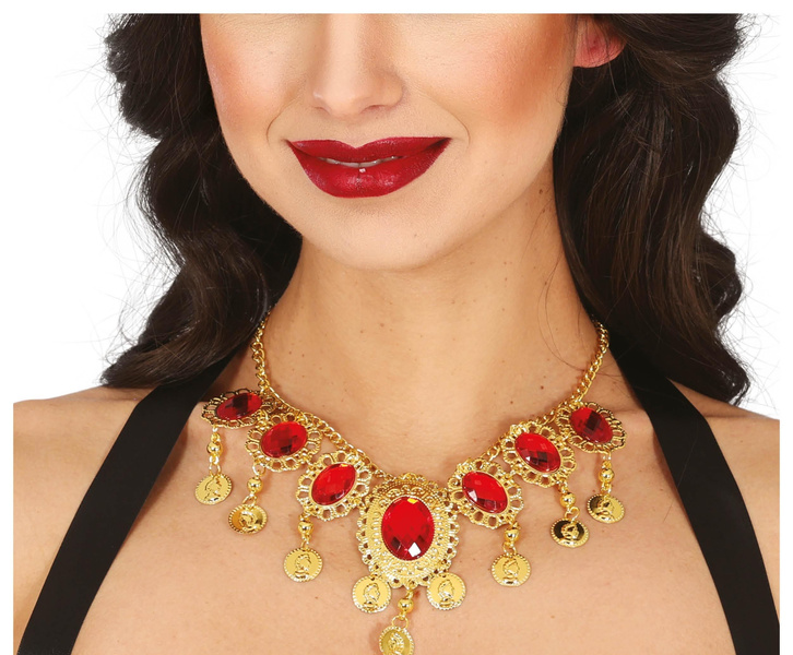Naszyjnik w złotym kolorze z imitacją czerwonych rubinów.
