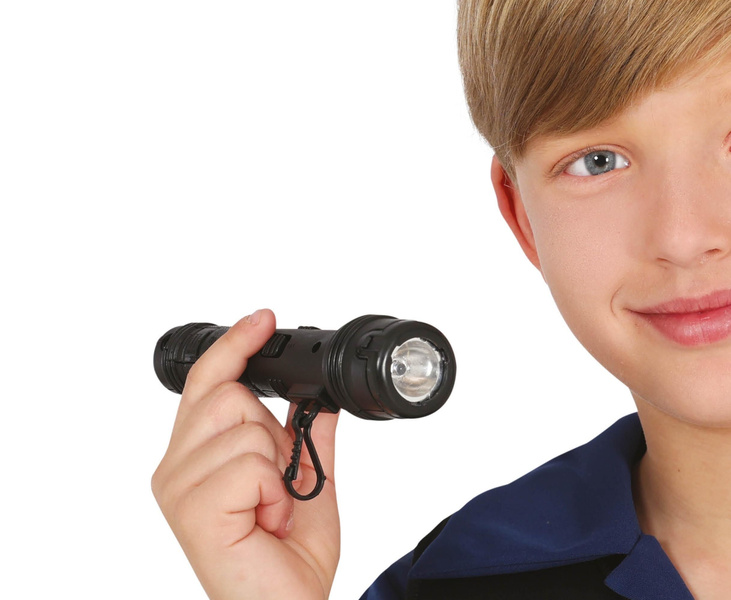 Czarna latarka na baterie.