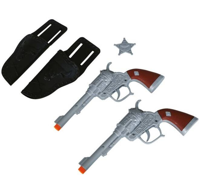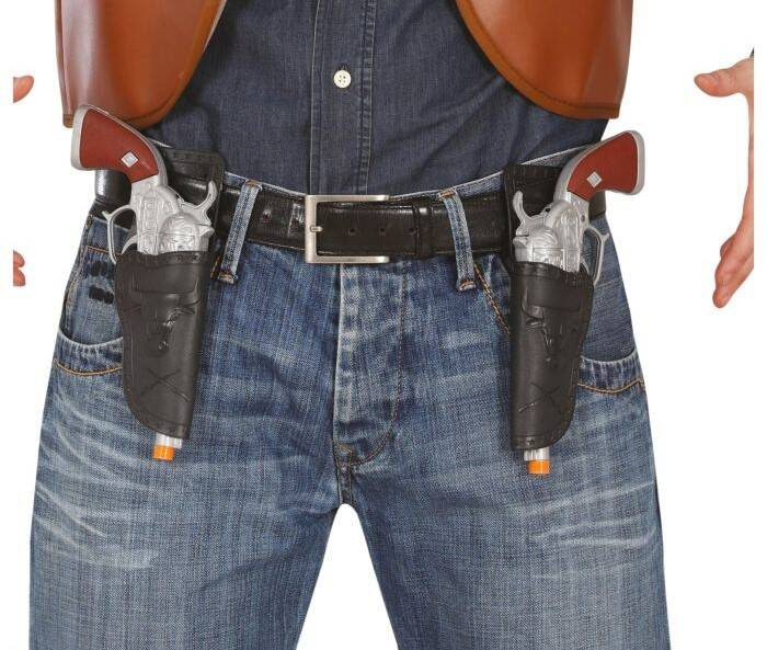 Kabura z dwoma pistoletami oraz odznaka szeryfa.