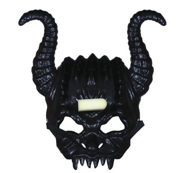 Maska diabła zasłaniająca górną część twarzy wraz z czołem.