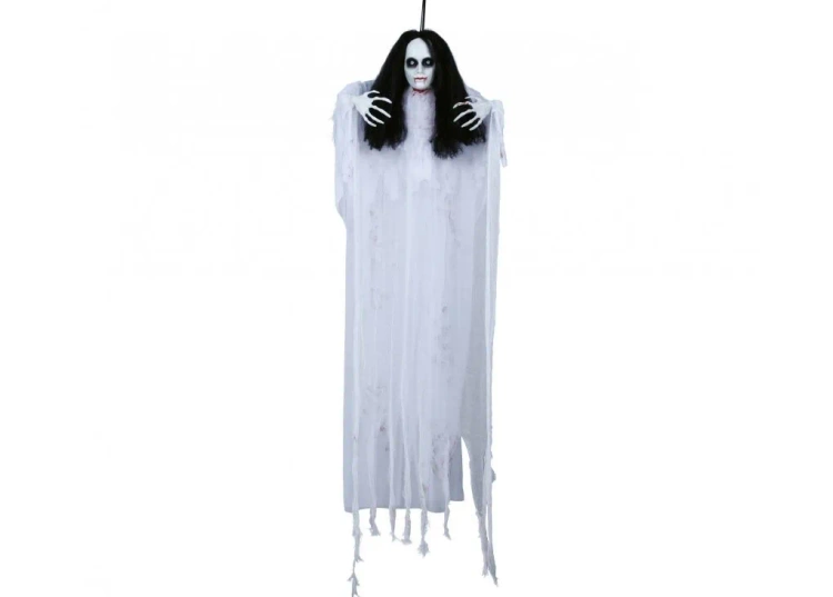 Produkt ubrany w białą szatę, zdobiony czarnymi włosami.