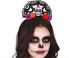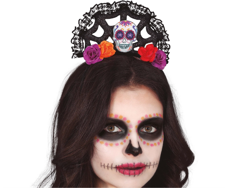 Posiada koronkę, ozdobiona kwiatami, czaszka.