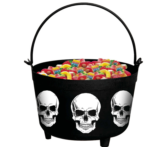 Wiaderko w kolorze czarnym z nadrukiem czaszek.