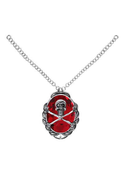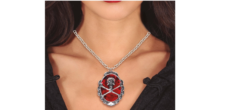 Na medalionie znajduje się czaszka ze skrzyżowanymi kośćmi.