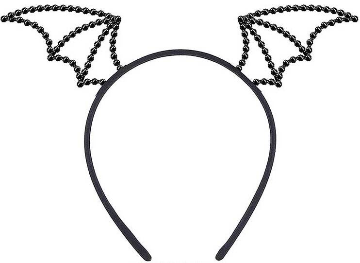 Metalowa Czarna Opaska z Skrzydełkami Nietoperza i Diamencikami.