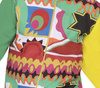 Bluza z długim rękawem, zapinana na zamek z kolorowymi wzorami.