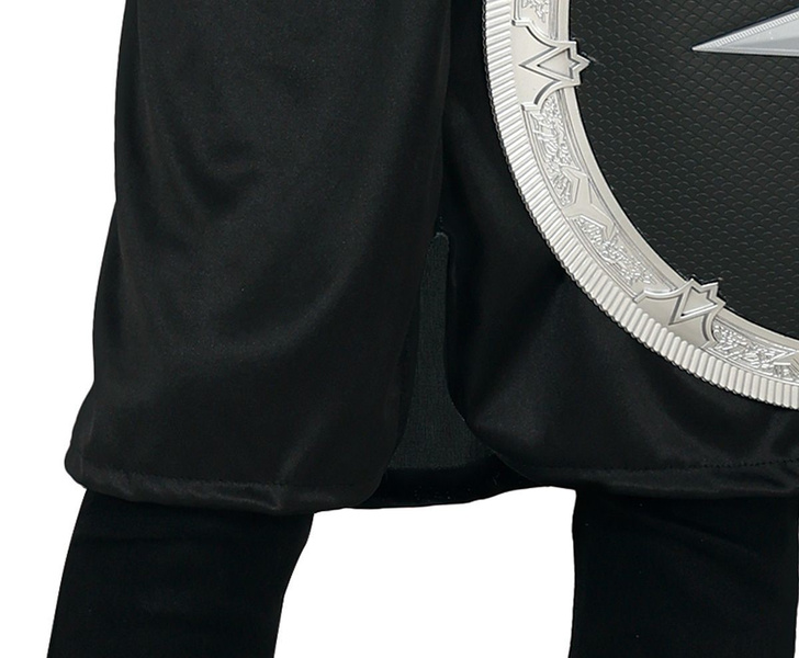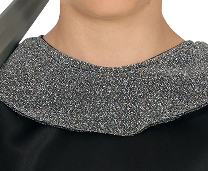 Czarna tunika ze srebrnym kołnierzem.