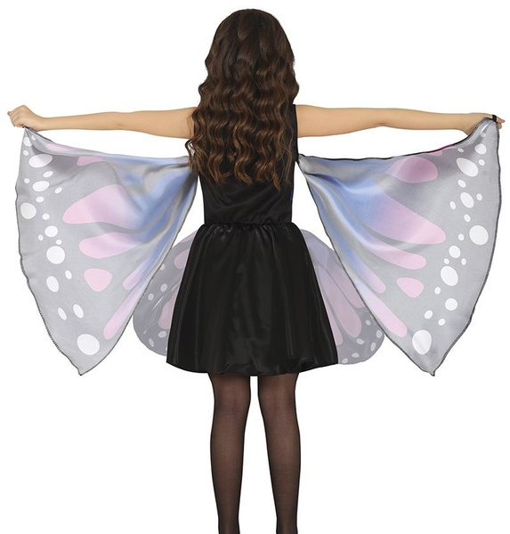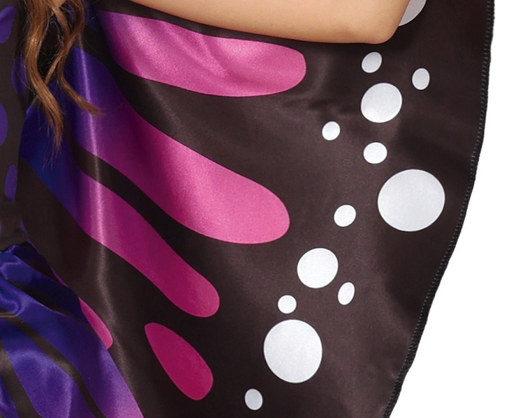 Skrzydła w kolorze fioletowo-różowo-czarnym, z cienkiego materiału posiadają gumki na palce.