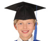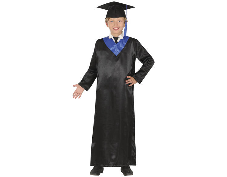 Strój małego absolwenta w kolorze czarnym z niebieskimi wstawkami.