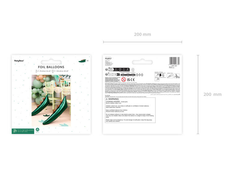 Balon foliowy ogon dinozaura w kolorze zielonym.