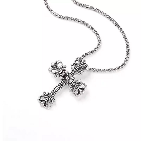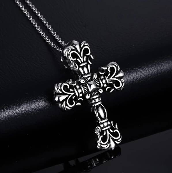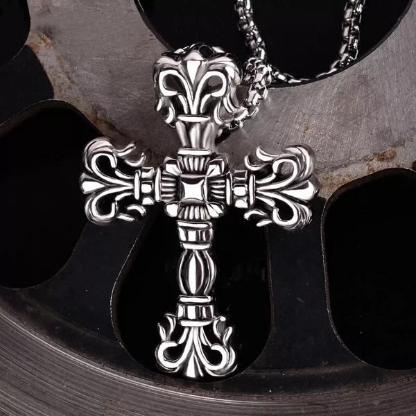 Krzyż w kolorze srebrnym.