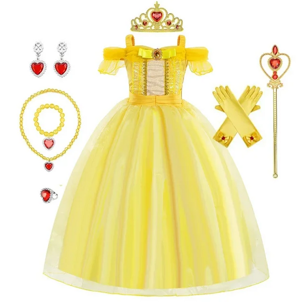 Bogato zdobiony strój Belli dla małych księżniczek.