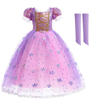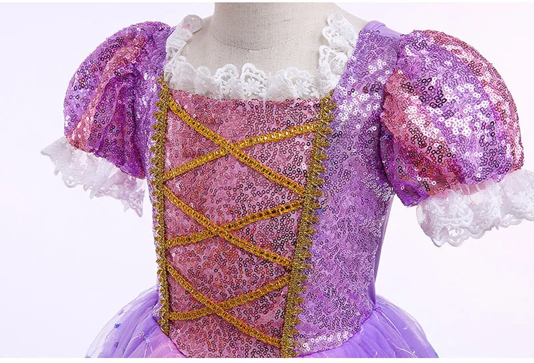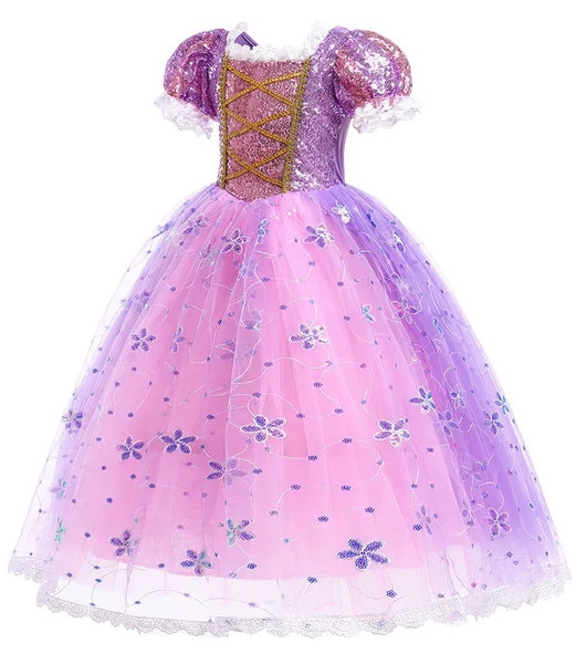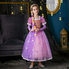 Bogato zdobiony strój Roszpunki dla małych księżniczek.