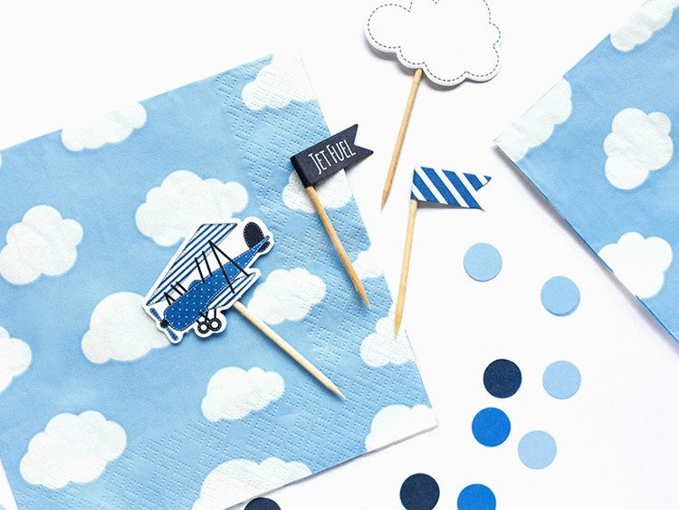 Serwetki papierowe Samolocik w kolorze błękitnym z białym nadrukiem.